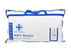Το μαξιλάρι Softballs της εταιρίας Daunex είναι υποαλλεργικό και αποτελείται στο εσωτερικό του από 100% μικρές μαλακές σφαίρες από μικροΐνες που αναπνέουν με ειδική επεξεργασία εφέ φτερού. Το εξωτερικό του κάλυμμα αποτελείται από 100% βαμβάκι cambric 70-130 g/m2. Είναι κατασκευασμένο 100% στο Τρέντο της Ιταλίας.