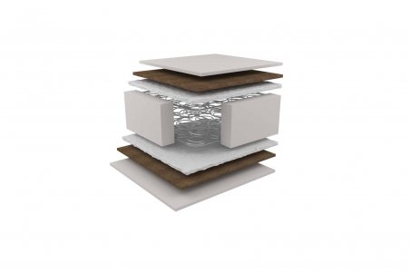 Sleeping mattress from mini Bonnel springs, Textured coconut, Felt and Foam Plus. The mini Bonnel springs give an absolute feeling of support and stability. Coconut enhances the support and stability of the mattress, while at the same time, as a natural material, it contributes to its proper breathing. Foam Plus is a foam of high density and durability for high elasticity, flexibility and uniformity that ensures maximum performance of the mattress.