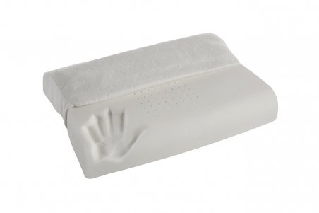 Anatomical pillow of advanced technology memory foam Memoform with ergonomic double wave shape. This material has the ability to adapt to the shape of the head and to eliminate any pressure. Properly supports the neck, helps in good blood circulation and offers relaxation of the muscles of the area.
